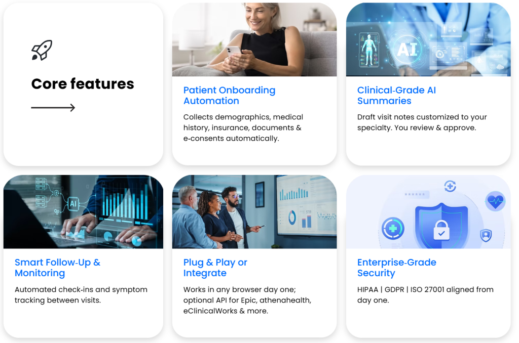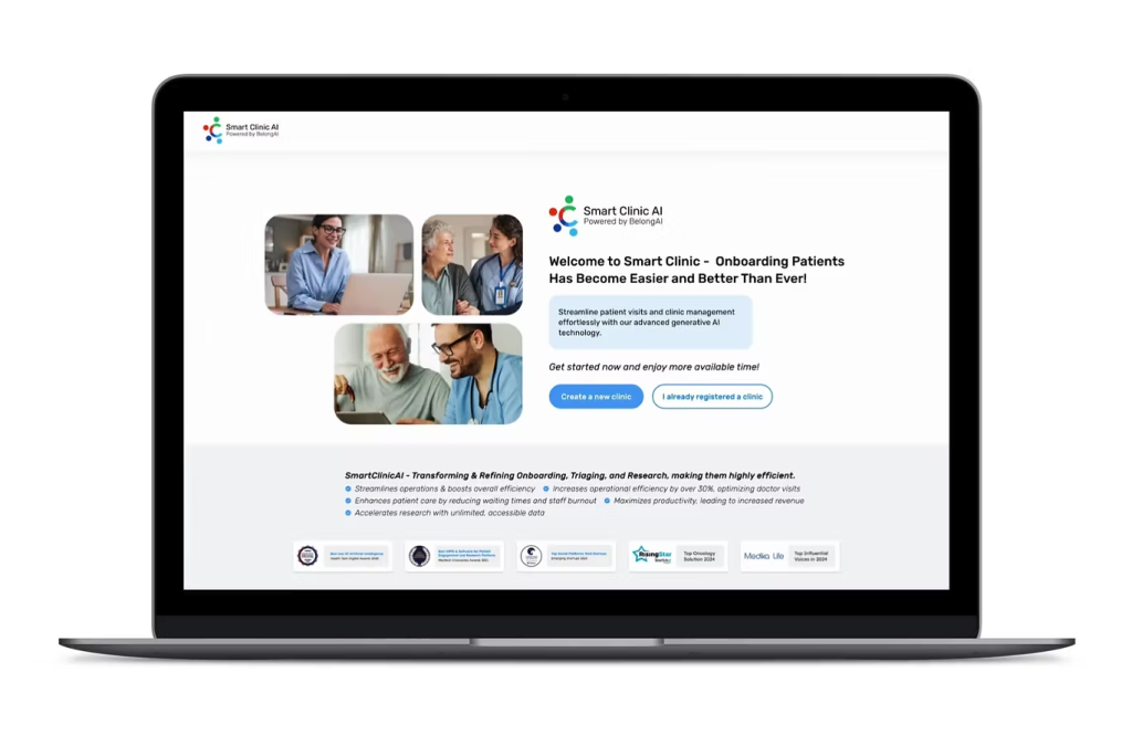 By automating patient intake, pre‑visit interviews, document collection, and medical record summarization, often before the patient arrives, Smart Clinic AI offers an AI‑enabled workflow layer that operates seamlessly alongside the existing clinic processes. The recognition reflects how the solution combines validated AI automation and clinically structured workflows to reduce administrative burden, support higher clinic throughput, and enhance the overall visit experience for both patients and physicians.