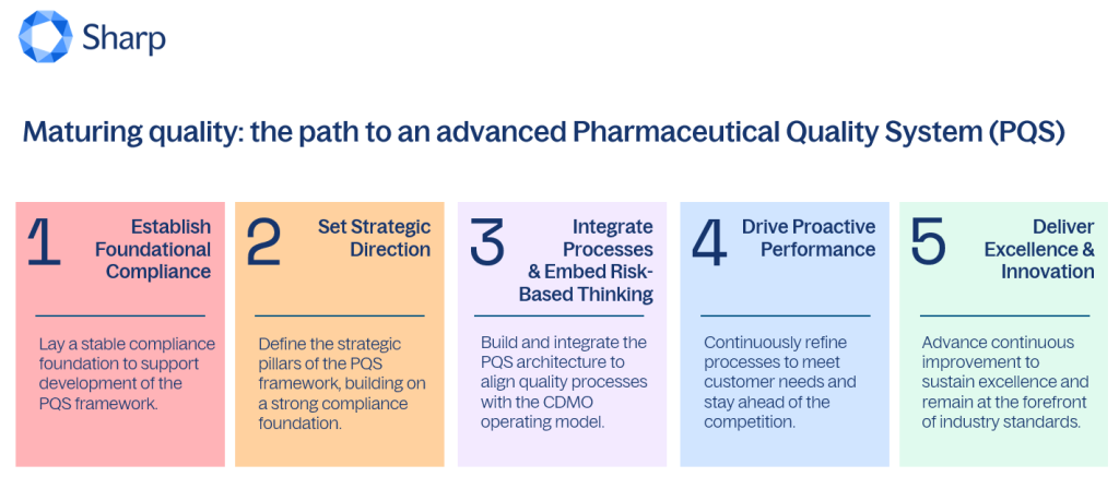 GB: At this stage, quality excellence is defined by Sharp’s ability to sustain, adapt, and lead as industry expectations continue to evolve. The PQS operates as an integrated platform ensuring compliance, and actively enabling innovation, operational excellence, and customer confidence across the enterprise. It is fully embedded into how the business is run, supporting product lifecycle decision‑making, enabling proactive risk management, and maintaining a durable state of control while continuously improving performance. Specifically, phase 5 is characterized by: